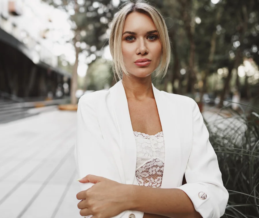 woman in white tank top -- facelift -- Newport Beach Plastic Surgeon, Dr. Michael Sundine